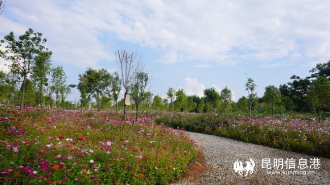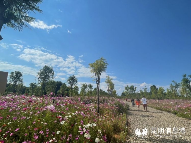 格桑花,在西藏又称为幸福之花。这片花海位于洛龙河入滇口的和谐公园内,与烟波浩渺的滇池仅隔50米。放眼望去,粉色、白色、玫红的格桑花在蓝天下摇曳,带给人无尽的浪漫和美好。你可以穿上美美的裙子,摁下快门“咔擦”一声惊艳朋友圈。
