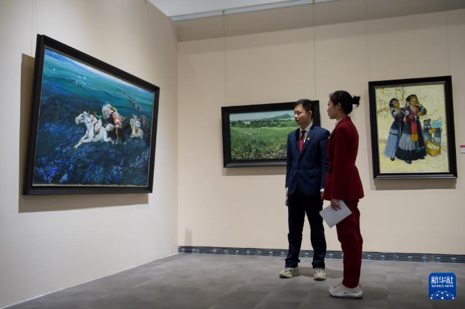 当日,“各族人民心向党——国家典藏美术作品展”在内蒙古展览馆举办。此次美术展以铸牢中华民族共同体意识为主题,共展出国画、油画作品100幅。展览将持续至10月22日。
