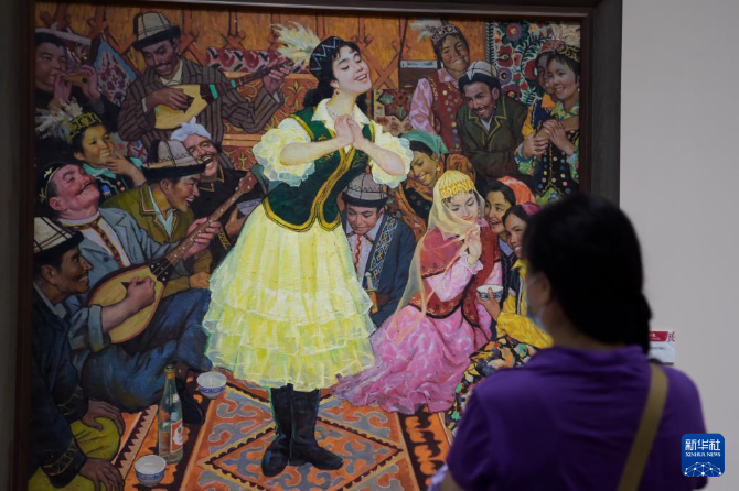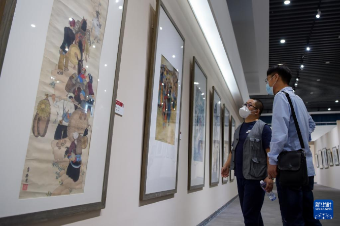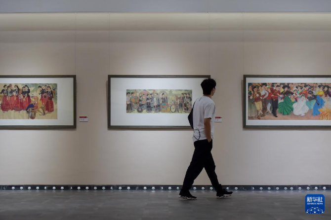 9月23日,观众在“各族人民心向党——国家典藏美术作品展”上参观。新华社记者 朱文哲 摄