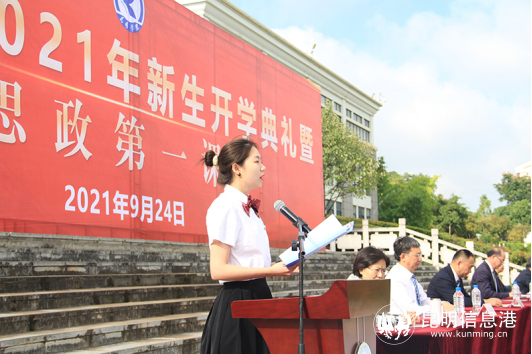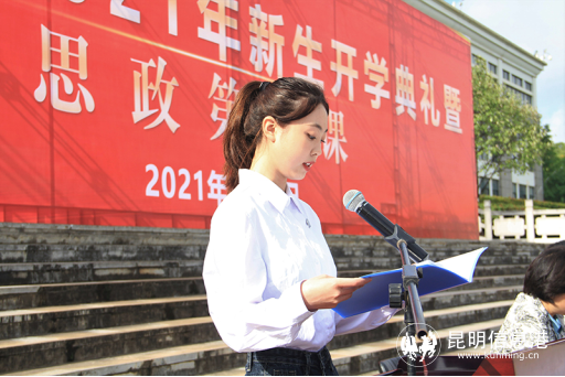 本科新生代表、马克思主义学院张可心同学在发言中表达了成为一名昆院“新主人”的激动之情,表示将谨记习近平总书记的谆谆教诲,担起时代使命,与学校共同发展,努力成为新时代的追梦人。
