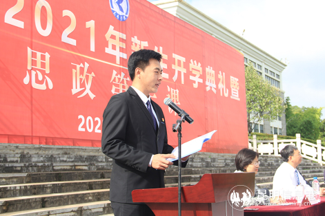 典礼上,教师代表、体育学院院长叶燎昆教授发言,鼓励新生锻炼强壮体魄,铭记“明德至善,知行利物”校训,规划好大学四年的时光,在大学之路上,重新出发,付出努力并持之以恒。