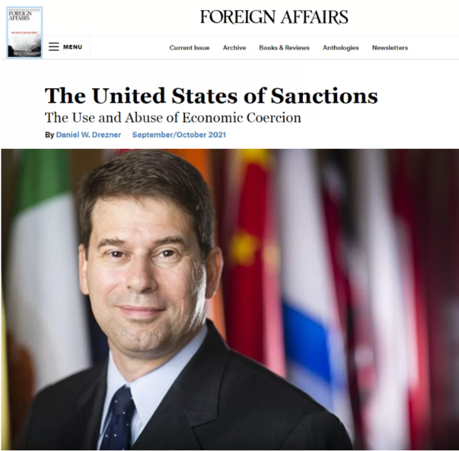 △《外交事务》发表丹尼尔·德雷兹纳的文章:《制裁合众国:经济胁迫的滥用》