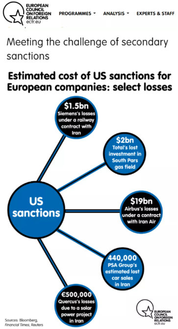 △欧洲对外关系委员会网站截图,美国制裁欧洲公司的预估成本