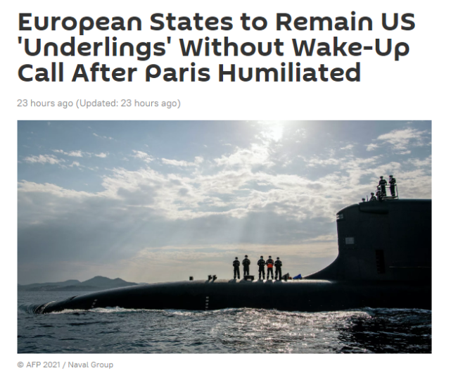 俄新社25日指出,如果欧洲国家不修改北约联盟的概念,那么在法国被拜登政府“羞辱”后,美国的欧洲盟友将继续被美国利用和抛弃。