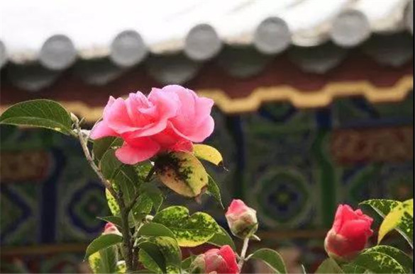 在云南,花事最盛的地方是大理、昆明、腾冲,大理适于种植山茶花,民居造照壁,白墙为纸,山茶花为绘,成天然图画,美不胜收。这里,大多数茶花种植是从唐代开始的,南诏国时候就有了。当地有家家养花习惯,攀比都是拿茶花说事。