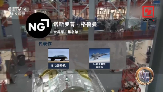 诺斯罗普·格鲁曼,世界军工排名第三。代表作:B-2轰炸机、F-18大黄蜂战斗机,是全美唯一能建造尼米兹级航空母舰的公司,也是美国能建造核潜艇的两家公司之一。