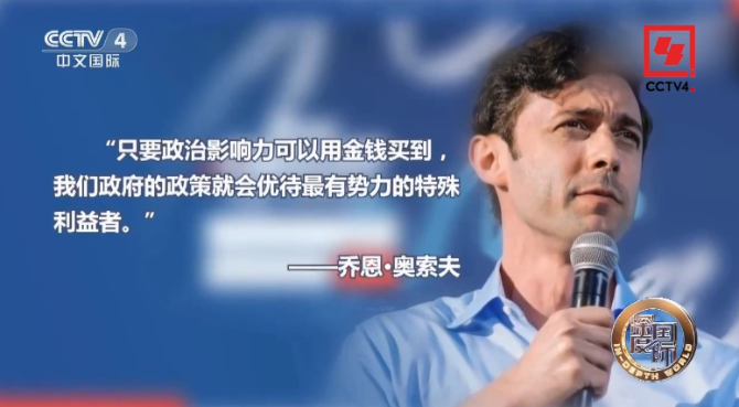 耗费巨资才在佐治亚州艰难赢得参议院席位的乔恩·奥索夫曾在他的竞选网站上不加掩饰地说:“只要政治影响力可以用金钱买到,我们政府的政策就会优待最有势力的特殊利益者。”