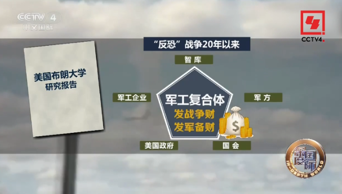 美国布朗大学研究报告发现,“反恐”战争20年以来,美国军工企业和美国政府、国会、军方、智库等各方出于共同利益,日益形成捆绑紧密且势力庞大的军工产业利益集团——“军工复合体”,其特点就是发战争财、发军备财。