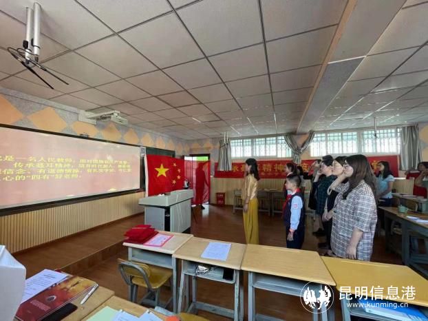 活动中,全体老师在学校校长的带领下庄严宣誓:“我是一名人民教师,面对国旗我庄严宣誓:传承聂耳精神,培育时代新人,做有理想信念、有道德情操、有扎实学识、有仁爱之心的‘四有’好老师。”