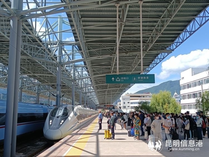 据了解,今年国庆黄金周,云南铁路客流以中短途及省内探亲、旅游为主,省内客流出行需求较大。昆明局集团坚持旅客至上、安全至上的原则,科学分析常态化疫情防控形势下旅客出行规律,合理安排运能满足旅客需求,计划恢复开行昆明南至长沙南、成都东动车3对,玉溪至北京西普速列车1对。增加重点省际直通方向动车运能,重联大理至成都东、重庆西、广州南方向,昆明南至北京西、上海虹桥、广州南、万州北、深圳北等方向直通动车12对。预计节前9月30日、10月1日,节后10月7、8日为客流高峰期,最高日计划开行客车195对左右。