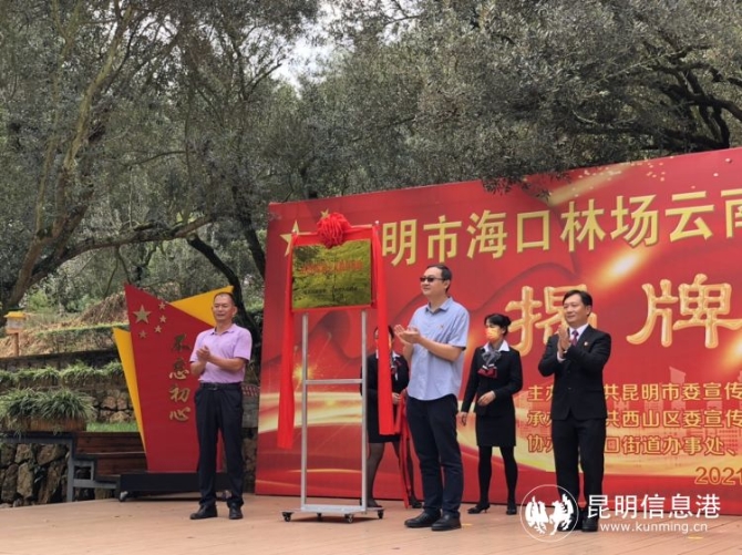 昆明信息港讯 记者李莹 9月29日,昆明市海口林场省级爱国主义教育基地揭牌仪式在海口林场举行。此次揭牌仪式标志着海口林场从市级爱国主义教育基地升级为省级爱国主义教育基地,也是2021年昆明市唯一成功申报的云南省省级爱国主义教育基地。