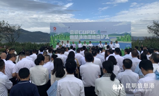活动现场,中共昆明市官渡区委书记、昆明综合保税区党工委书记兼管委会主任、昆明空港经济区党工委书记和丽川发出倡议,在COP15召开之际,为保护好昆明“母亲湖”——滇池,让大家争做湿地的宣传者、行动者、捍卫者,共同当好“滇池湿地守护人。中共昆明市官渡区委副书记、区人民政府区长周燕宣读“我是滇池湿地守护人”公约,倡议所有人关心关注湿地,参与监督举报,齐心协力共治共建生态家园。