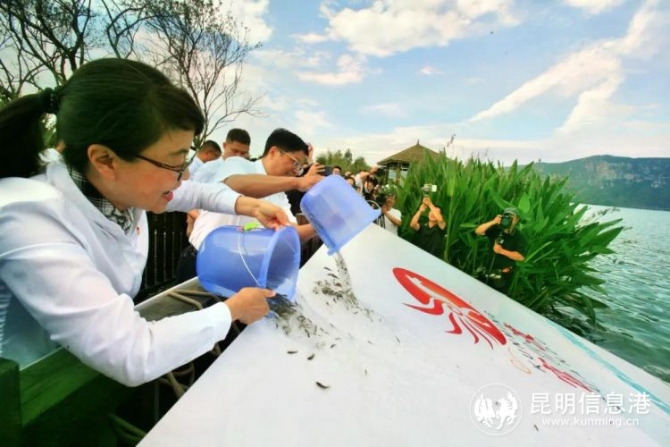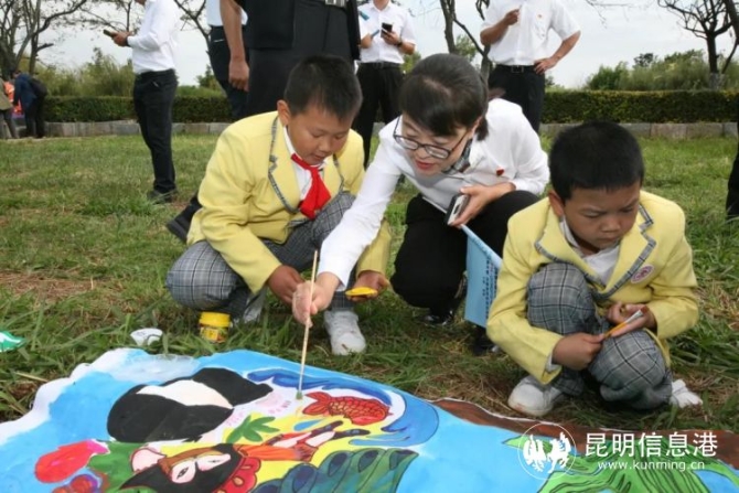 随后,与会领导、志愿们进行了“土著鱼苗”放归滇池活动,“扑通~”活蹦乱跳的鱼儿被放归滇池,回到自然的怀抱。鱼儿回归的滇池,是我们赖以生存的母亲湖,100名官渡少年现场绘画,用“百米滇池画卷”勾勒出滇池湿地的美景记忆,记录湿地生态美景。在孩子们笔下,西山与滇池交相辉映,自然美景与城市风光浑然一体,引来市民赞叹不绝。