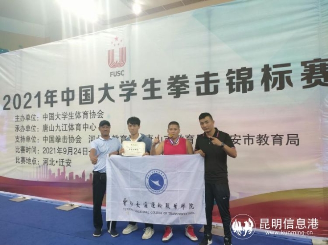 云南交通运输职业学院在2021年中国大学生拳击锦标赛上摘金