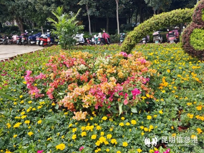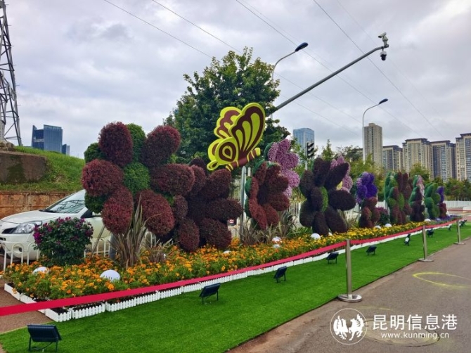 昆明信息港讯 记者段佳琪 通讯员田佳丽 近日,在呈贡区和谐路和锦绣大街交叉口,一组融入了昆明南站、长水机场重要交通枢纽地标元素的立体花坛吸引了市民围观、拍照。