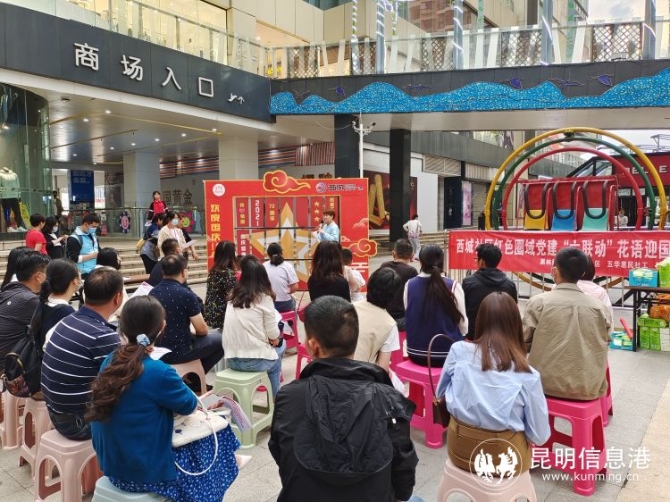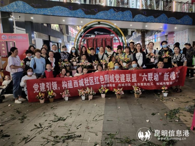 昆明信息港讯 记者昝娟娟 为庆祝新中国建立七十二周年华诞,丰富社区居民精神文化生活,9月29日,西城社区党委联合昆明立德物业、五华区惠民社会工作服务中心,在西城时代商业广场开展“红色圈域党建联盟‘六联动’”花语迎国庆主题活动。