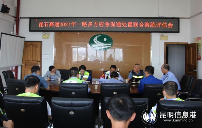 昆明信息港讯 记者昝娟娟 为进一步保障国庆、COP15期间道路突发应急情况快速处置,切实提高突发事件应急处置能力,2021年9月30日,昆石路政大队联合昆石交警、昆石分处、昆石养护部门在昆石高速公路下行线K1843+600M处举行昆石高速公路应急保通处置联合演练。