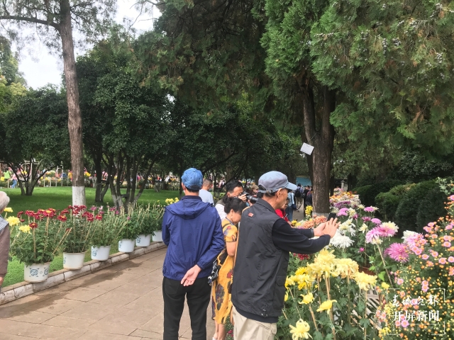 待到重阳日,还来就菊花。每到国庆节时,到大观公园赏菊成了昆明市民的一项传统,这里的菊花品种多,让人如入花海。国庆首日,春城晚报-开屏新闻记者发现,截至当天下午2时,就有1万多名游客入园赏菊。