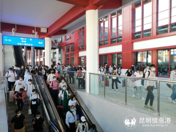 昆明信息港讯 记者上官艳君 今天(10月1日),记者从中国铁路昆明局集团有限公司(下称“昆明局集团”)获悉,国庆假期首日,云南铁路实施高峰运行图,开行旅客列车200多对,共计400列左右,创单日列车开行新高。其中,增开昆明至贵阳、大理、丽江等方向普速和动车共计38趟,重联昆明至北京、上海、广州、成渝等方向动车24趟,预计发送旅客34万人次。