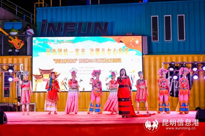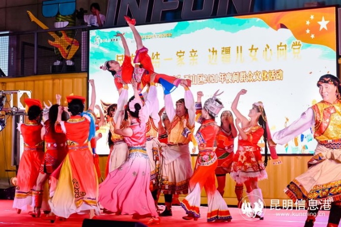 昆明信息港讯 记者张琪蕊 9月30日,由云南省文化和旅游厅主办,云南省文化馆、昆明市文化和旅游局、西山区文化和旅游局承办,昆明市文化馆、西山区文化馆、云纺商业集团执行的“民族团结一家亲 边疆儿女心向党”2021夜间群众文化演出活动在西山区云纺广场举行。