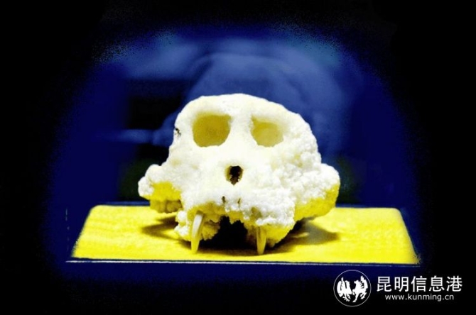 在石得利地质博物馆,记者看到一个猴子的头颅化石被认定为“大世界基尼斯之最——方解石雏晶包裹猴头化石”。讲解员告诉记者,一般化石的形成要经过数年至数十万年,而这猴子的头颅化石的形成却只用了一万年的时间,这就很难能可贵了!据了解,类似的“大世界基尼斯之最”,石林石得利地质博物馆已有10件。