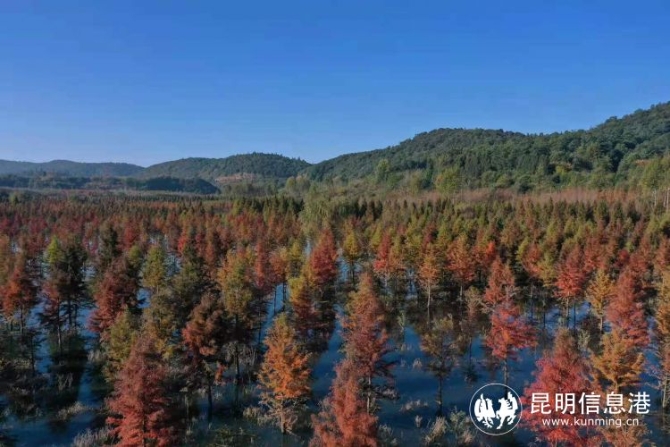 松华坝水库上游甸尾村,种植着密密麻麻的水杉,它是昆明市松华坝水库河口生态恢复项目建设工程的一部分,水杉种植项目承载着以下功能:恢复建设区河流沿岸生态带的生物多样性,使建设区域逐渐形成良性循环的生态系统;强化建设区河流沿岸生态带的自然净化能力,利用生态带内生物系统的过滤、截污功能,削减面源污染负荷,有效改善入河水质,降低入河污染负荷;拦截入河地表径流中的垃圾、泥沙等,减少河床的淤积;建设具有特色、景观怡人、良性运行的生态系统,改善河流沿岸生态景观,改善河流沿岸的环境状况,甸尾水杉种植区已成为昆明市环境保护宣传教育基地之一。