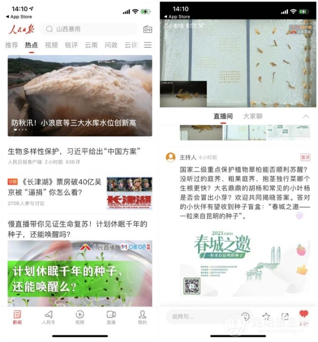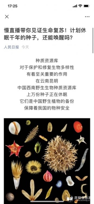 即日起,全国网友可进入人民日报客户端观看“慢直播带你见证生命复苏!计划休眠千年的种子,还能唤醒吗?”,参与互动既有机会收到这份来自昆明的礼物。
