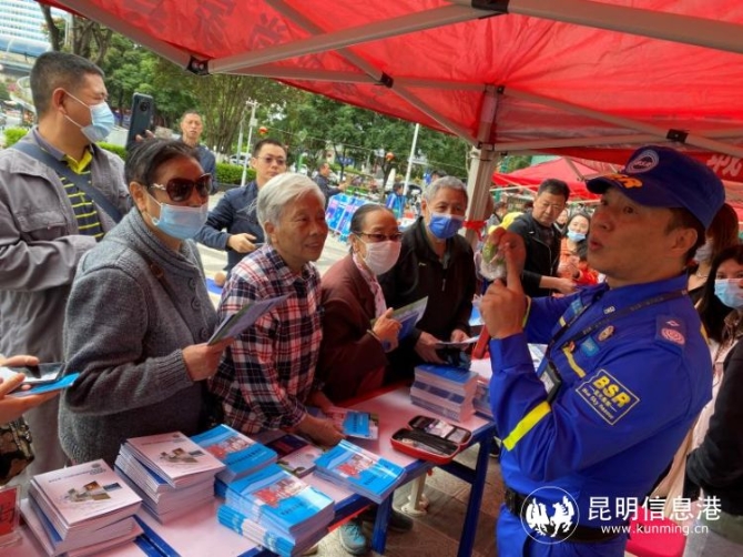昆明信息港讯 记者李红鸾 10月13日是第32个“国际减灾日”,为进一步增强人民群众防灾减灾意识,着力提高村(社区)基础设施设防水平, 增强基层防灾减灾能力,切实减轻灾害风险。提高人民群众在应对自然灾害时的避灾自救能力,唤起社会各界对防灾减灾工作的高度关注,盘龙区减灾委员会、盘龙区应急管理局及联盟街道办事处、盘龙区消防救援大队、世博消防救援大队等区减灾委部分成员单位在得胜家居小广场开展以“构建灾害风险适应性和抗灾力”为主题的2021年国际减灾日宣传活动。