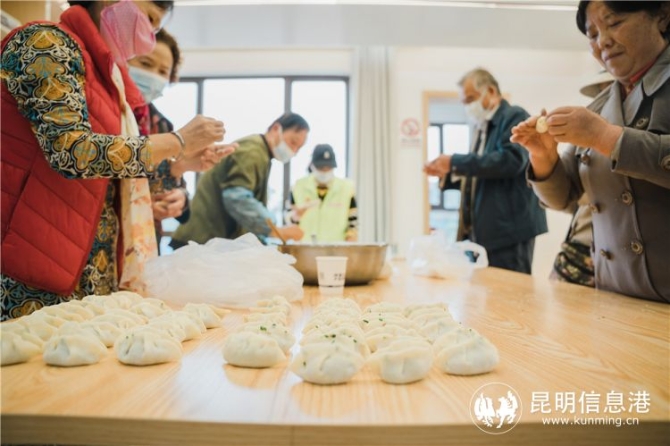 社区居民胡廷生大爷今天早早就来到这里,呼朋引伴忙个不停。他对记者说,社区搞的这个活动很好,很暖心。今天是重阳节也是敬老节,在这里很老伙计们一起包饺子吃饺子,就像一家人一样。