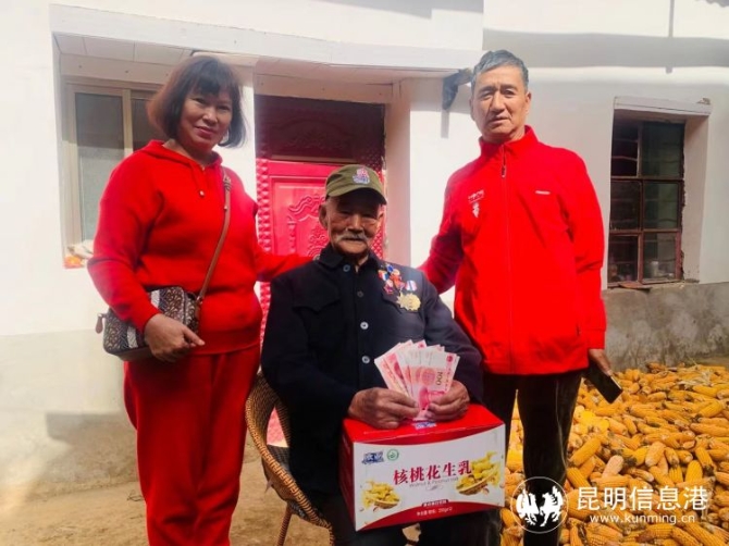 10月11日,云南关爱老兵办派员前往玉溪,将2000元慰问金交到了97岁癌症晚期抗战老兵金绍光手中。12日,大家又前往易门县麻风病康复村,为6位老人每人送去500元红包,以及价值2258元的36件套冬装,价值2千元的米、油、面、糖和核桃奶。