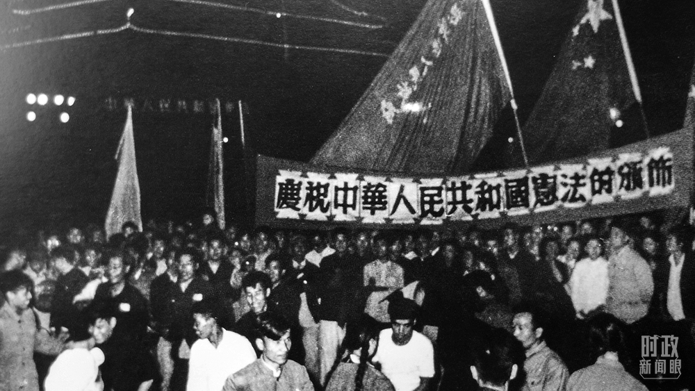 △1954年9月20日,第一届全国人民代表大会第一次会议全票通过了《中华人民共和国宪法》。这是当时首都人民在天安门广场欢庆新中国第一部宪法的颁布。(图/视觉中国)