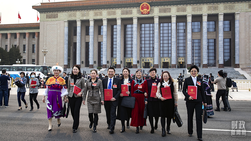 △2021年3月11日,十三届全国人大四次会议闭幕会后,代表们走出人民大会堂。(图/视觉中国)