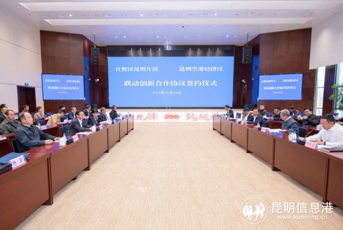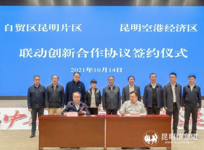 昆明信息港讯 记者苟廷廷 通讯员冯靖凯 10月14日,中国(云南)自贸区昆明片区与昆明空港经济区联动创新合作协议签约仪式在滇中新区举行,标志着双方合作步入了新阶段,空港枢纽与陆港枢纽联动发展开启了新征程。