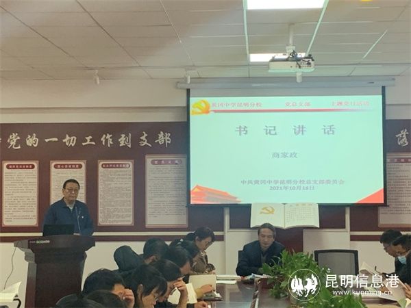 昆明信息港讯 记者黄彩英 通讯员周伟 10月18日下午,黄冈中学昆明分校党总支开展“夯实精神 阔步迎新”主题党日活动,专题学习贯彻习近平总书记在庆祝中国共产党成立100周年大会上的重要讲话精神,进一步研究部署学习宣传贯彻工作。