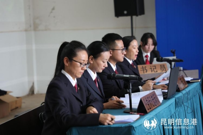 “法检两长”同庭办案:盘龙法院党组书记、院长范今颖担任审判长,官渡区人民检察院党组书记、检察长陈育作为公诉人出庭。