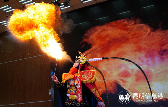 白炳荣老师身着精美戏服,伴随着锵锵锣鼓声才一登台亮相就获得阵阵掌声、喝彩声,白炳荣老师表演的川剧变脸可谓是亦庄亦谐,一张张脸谱,变幻无穷,或威风凛凛,让人望而生畏;或笑意吟吟,宛如不经世事的少年。在此起彼伏的欢呼声中,白炳荣老师表演的川剧吐火更是将现场气氛推向高潮。