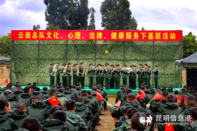 昆明信息港讯 记者曾子芮 通讯员 赵明军 朱云磊 李扬 范开浪 赵彦宝 “来了、来了!‘四送’服务小分队到了!”这几天在各大媒体经常看到小分队的精彩表演心里很是期待,今天小分队终于来了,战士彭小峰激动的说道,黝黑的脸庞洋溢着幸福的笑容。日前,武警云南总队文化、心理、法律、健康服务小分队来到滇西边陲保山,为驻守在这里的武警官兵送上暖心服务。