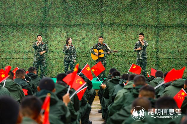 精彩纷呈的文艺表演在舞蹈《热血军营》中拉开帷幕,舞台上队员们纷纷使出浑身解数,亮出拿手好戏;军乐演奏《没有共产党就没有新中国》澎湃的歌声回荡在耳畔,重现了那个年代共产党人为寻求救国救民真理不懈探索、不怕牺牲、英勇斗争的伟大精神;小乐队演奏《我的祖国》,清澈的爱只为祖国,赤诚的忠心只为党和人民,西南大门有我,祖国请放心;舞蹈《心理健康操》欢快的节拍,让台上台下的心一起律动,驱散身体的寒意,化解思想上的包袱;歌曲《党旗更鲜艳》《整装待发》《理想是一道不灭的光》演绎了新一代革命军人将青春绽放在强军路上,筑梦强军、渴望光荣的真实写照;舞蹈《使命战旗》展现新时代官兵把青春压进枪膛,热血铿锵,任务与使命深刻于胸膛一往无前、所向披靡狭路相逢勇者胜的生动形象。