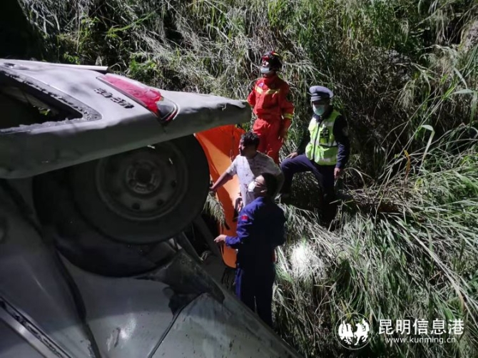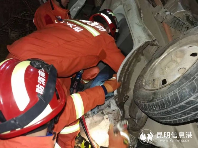 昆明信息港讯 记者劳学丽 通讯员罗世荣 10月25日0时23分,临沧市消防救援支队永德大队指挥中心接到报警,位于永德县前往永康方向的猴子沟隧道附近发生一起面包车冲下山崖事故,有人员被困,具体情况不详,该大队立即出动2车9名指战员前往处置。