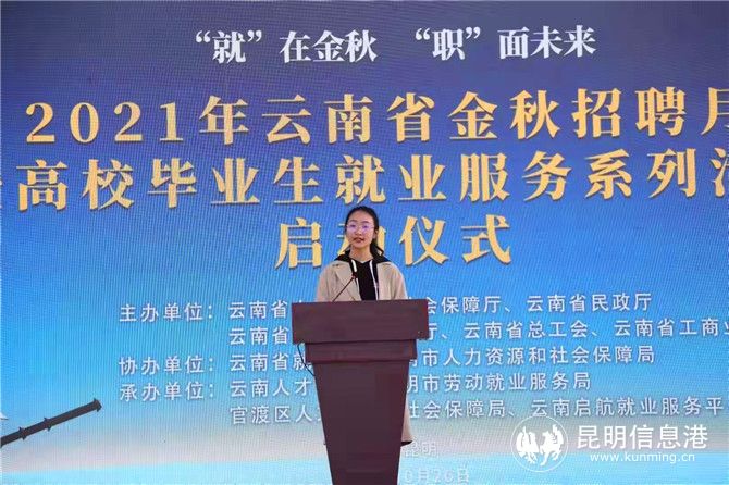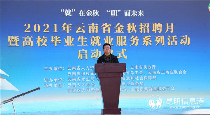 昆明信息港讯 记者江枫 10月26日上午,以“‘就’在金秋,‘职’面未来”为主题的2021年云南省金秋招聘月暨高校毕业生就业服务系列活动启动仪式,在昆明市官渡广场举行。