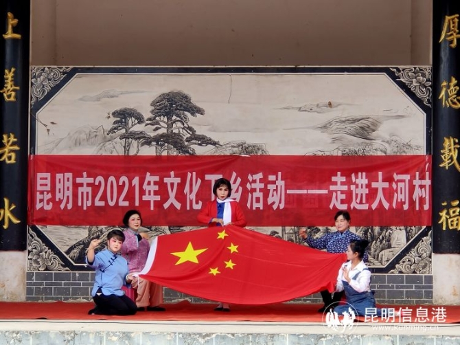昆明市文化和旅游局与昆明市文化馆在做好疫情防控的基础上,送戏下乡走进西山区团结街道大河村和乐居村,通过演出滇剧《白蛇传》、《绣红旗》、舞蹈《京韵》等歌舞、戏剧、曲艺等各类优秀文艺作品,歌颂党、歌颂人民、歌颂时代,并激发群众建设文明和谐社会的积极性。