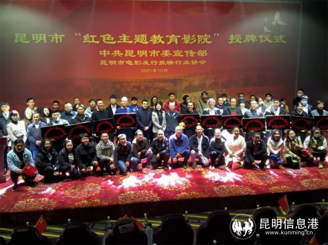 昆明信息港讯 记者俞逍 10月28日,昆明市“红色主题教育影院”授牌仪式在昆明大都光魔影院举行。会上,对经公示后命名为昆明市“红色主题教育影院”示范点的昆明大都光魔影院,以及命名为昆明市“红色主题教育影院”的10家电影放映单位进行授牌。