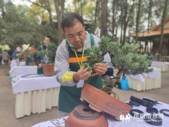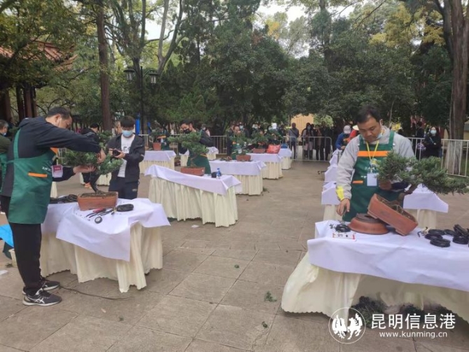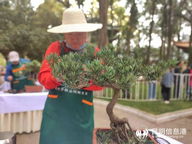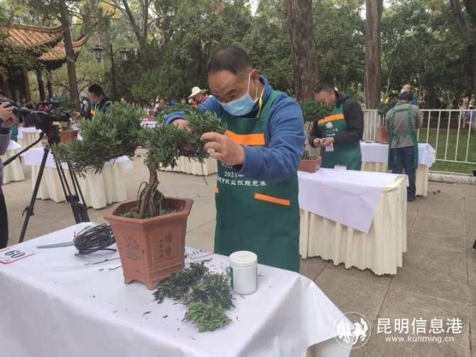 昆明信息港讯 记者杨雁 对植物进行修剪整形、盆景制作、植物病虫害防治以及插花技艺比拼,10月28日,2021年度昆明地区职业技能竞赛在大观公园启幕,昆明园林绿化行业职工和插花花艺的团体及个人在此次竞赛中比拼专业技能。