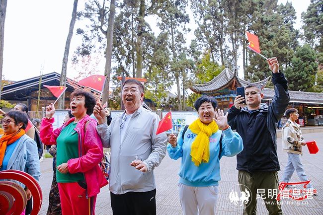 活动随着一首《唱支山歌给党听》的合唱拉开序幕,当熟悉的旋律、动听的声音响起,不少游客纷纷驻足观看,甚至自发加入到队伍中跟着歌唱,或用手机记录下这动人的画面,演员们声音整齐、歌声洪亮,用满腔的热情表达着对祖国和党的热爱的同时并赢得了在场游客热烈的掌声,现场喜庆的氛围使得在场的每一个人心中自豪感倍增。
