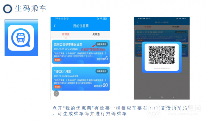 市民乘客通过昆明公交 “春城e路通”手机App,线上购买昆明公交冬季惠民日票或月票,获取相应手机二维码。乘客凭此手机二维码即可在规定时间内,扫码乘坐昆明公交任一条市内常规公交线路并消费相应次数。本次活动限昆明公交市内常规公交线路使用,远郊班车及定制公交、合乘公交、校园公交专线等不参与本次活动。