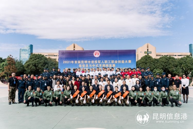 昆明信息港讯 记者李红鸾 11月5日上午,2021年首届昆明市退役军人职工职业技能大赛保安员与中式烹调师复赛暨云南省退役军人职工职业技能大赛选拔赛在昆明市经开区联邦四季酒店进行。来自云南众安保安服务有限公司茶永根和来自宜良金福饮食娱乐有限公司赵学舟分获保安和中式烹调师项目桂冠。