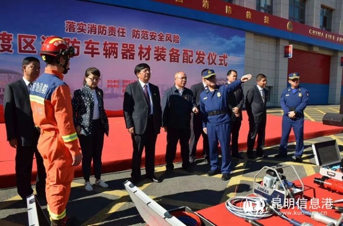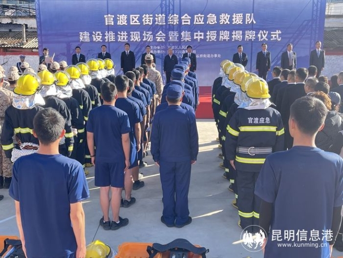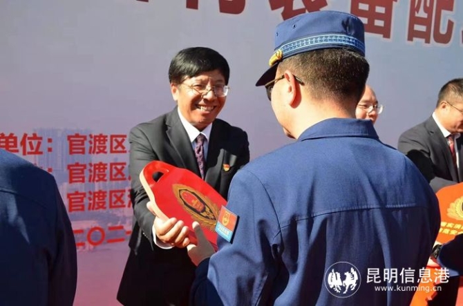 昆明信息港讯 记者龙泉积 通讯员甘露 李昊 郭武辉 11月6日,官渡区举行街道综合应急救援队伍建设现场推进会暨消防车辆器材装备配发仪式。据介绍,此次活动旨在有效优化整合全区应急救援力量和资源,全面做好街道综合应急救援队伍机制创新和能力培养,有效提升消防救援队伍装备质效。