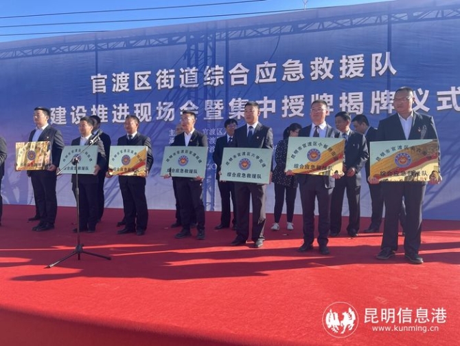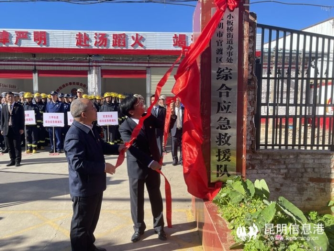 现场,与会领导为官渡区8个街道综合应急救援队伍授牌并现场观摩了小板桥街道综合应急救援队进行的应急实战演练,和丽川书记、昆明市应急局党委书记、局长李开德共同为小板桥街道综合应急救援队揭牌。