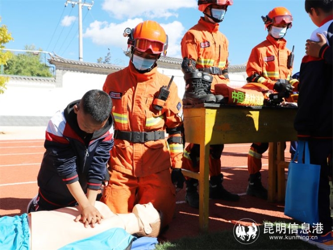 昆明信息港讯 记者俞逍 通讯员扬名 王杰 在第30个“119”全国消防宣传日到来之际,11月8日,云南省丽江市森林消防支队组织20名指战员走进古城区民族中学,展示消防救援装备、科普防灾避险常识。