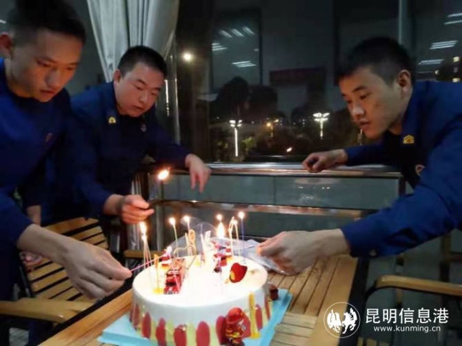 11月9日,是全国消防日,也是指战员们的生日。一群勇士、一腔热血、久久守护。警铃响起,春漫路站的指战员们2车14人又疾驰在夜幕里......“兄弟们记得平安归来,我们在一起绽放火一样的青春。”在救援的路上,通信员杨坤在对讲机里呼喊。没出警的兄弟订上一个大蛋糕,于是就出现了开头的那一幕,一声“平安归来!”缓解了一身的疲惫。